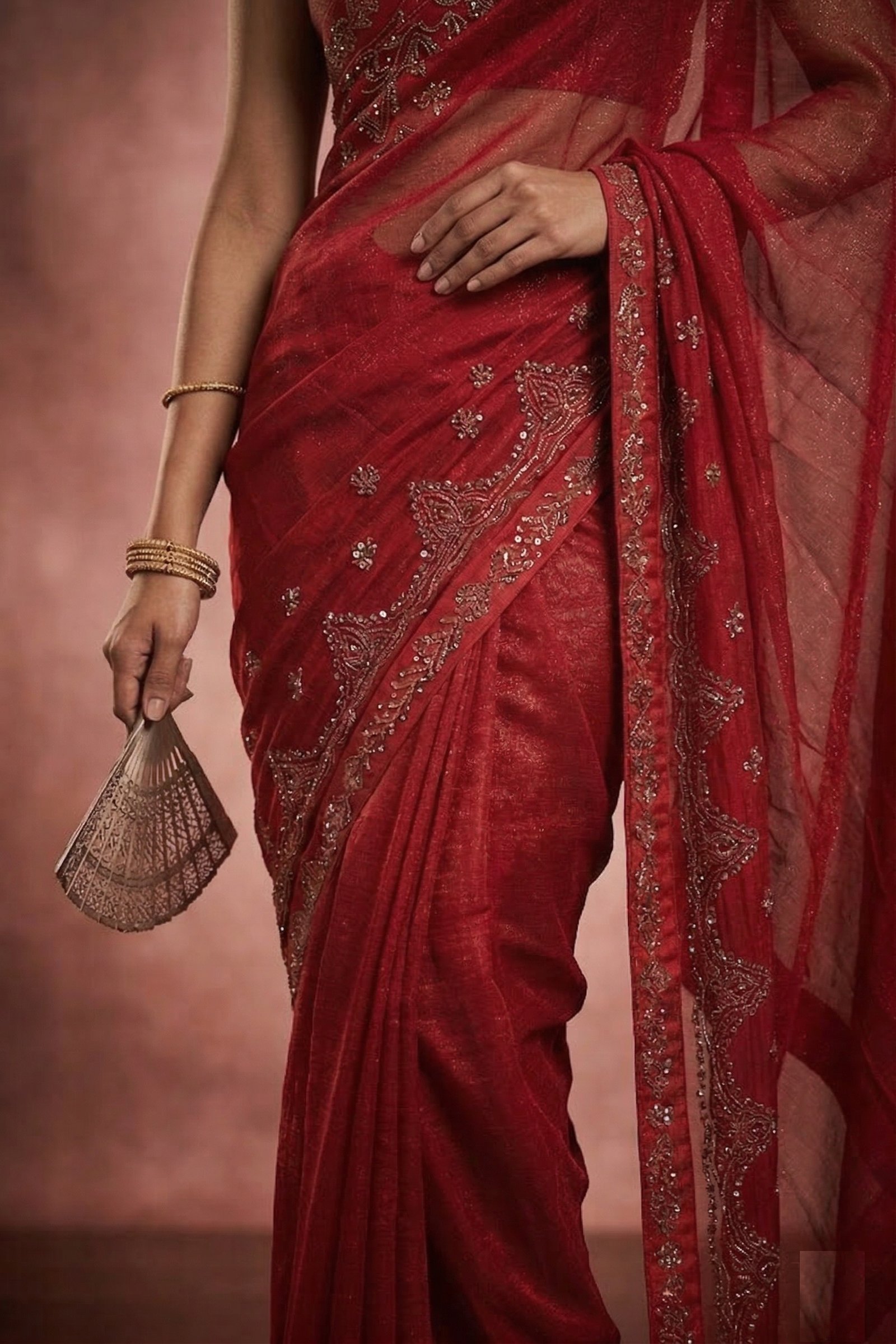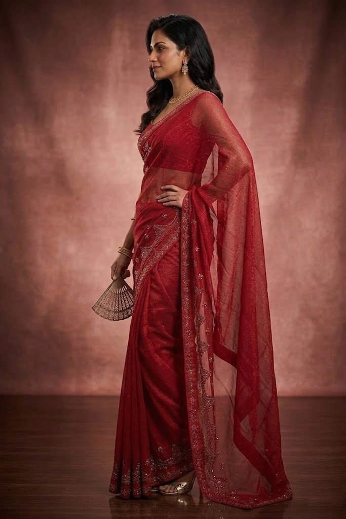 • Fabric: Premium Lightweight Shimmer Chiffon (Soft, breathable, and offers a graceful fluid drape).