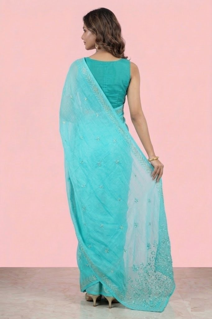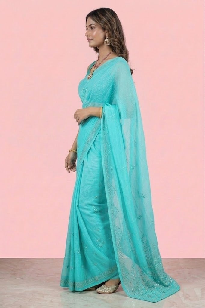 • Fabric: Premium Lightweight Shimmer Chiffon (Soft, breathable, and offers a graceful fluid drape).
